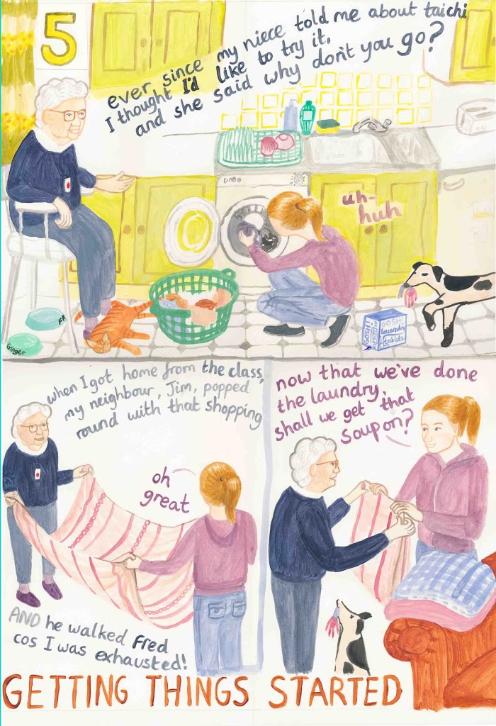 This Comic was commissioned in 2012 to help explain local services in a friendly way. The client wanted to emphasise the friendly and personalised nature of the help that can be provided, so the main character needed to have a personality and life history evident in her home and in the drawings.